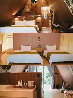 ❐There are single-story wooden houses, duplex wooden houses, light luxury tents and other overnight accommodations