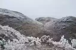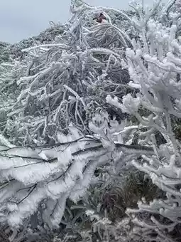The people of Guigang have their own 'Little Switzerland of Ice Mountains'🏔️. Recently, with the sudden drop in temperature, the top of Pingtianshan is covered in silver, a snow-white ❄️, like a healing white world~