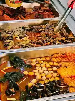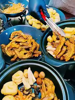 🍝2. Rice noodle corner: Triangular rice noodle wrapper with fillings, served with sauce