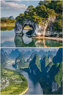Yulong River: The longest tributary of the Lijiang River in Yangshuo. The water is clear, and the current is gentle. Bamboo rafting is a popular activity. Along the way, you can see the beautiful scenery of Guilin's mountains, rivers, and countryside. There are many ancient bridges on the river, each with a unique design and legendary story.