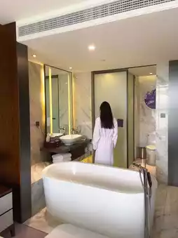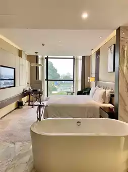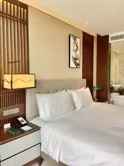 I stayed in a Deluxe King Room with floor-to-ceiling windows. Open the curtains, and Elephant Trunk Hill "bursts" into your room. Whether lying in bed or lounging by the window, you're immersed in Guilin's iconic landscape, as if a giant ink painting has been brought into your room 🌄. The room even includes a coffee machine and capsules—sip coffee ☕ by the window while soaking in the views, perfect for both work and relaxation. The vacation vibes are next level~