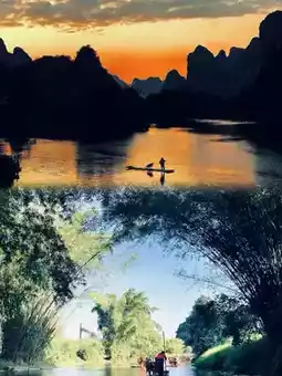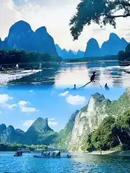 Water is Guilin's soul. The Li River winds through the mountains like an emerald ribbon. Drifting on a bamboo raft, you'll see mountain peaks reflected in the water and occasional scenes of fishermen on rafts with cormorants perched at the bow, as if you're gliding through a painting. The Yulong River is even more serene, with idyllic countryside views along its banks. As rafts glide by, they leave only gentle ripples and a heart full of contentment.
