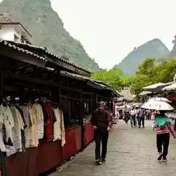 Yangshuo has this magical mix: lively streets, cobblestones, and bustling markets… all framed by the region’s iconic karst mountains rising dramatically in the background. 🌿