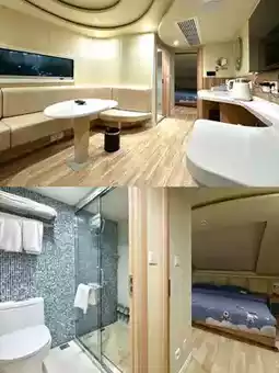 Strolling in the Xishanquan Car (RV) Camping Base, surrounded by mountains, you will find a tranquil environment with birds singing and flowers blooming. That night, I stayed in a car motel, where the car serves as a room, and the interior is like a star-rated hotel, fully equipped. The car motel has two rooms, making it very comfortable for a family of three.