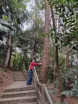 The highest peak of Xishan Mountain is 678 meters above sea level. Today is the weekend, and there are many people climbing the mountain. Many locals bring their children to experience the joy of climbing. Looking at the endless steps under my feet, the thought of retreating flashed in my mind. My husband climbed up first, which gave me strength. Up, up! The happy dopamine in my body was activated, and I felt relaxed and happy! Looking at these strange rocks and the trees with strong vitality, the roots lie on the rocks and grow well. It is incredible.
