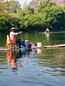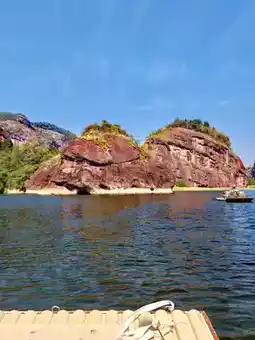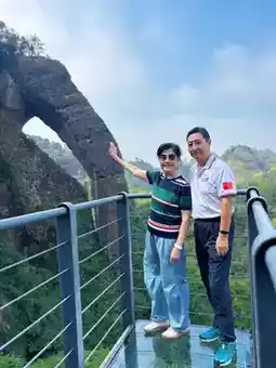 On the morning of October 17, 2025, at 9:40, comrades from the Heilongjiang Corps organized by Beidahuang Travel Agency arrived at the Longhu Mountain Scenic Area in Jiangxi for sightseeing. This is also my second visit to Longhu Mountain since October 21, 2007. After 18 years, it feels like the scenic area has changed a lot, as if the entire area has expanded significantly. Located in Yingtan, Jiangxi, this place is the birthplace of Taoism in China and a typical Danxia landform scenic area. First, we took the scenic area shuttle bus to the foot of Elephant Trunk Hill. After getting off, we walked along the aerial plank road, feeling as if we were inside a magnificent landscape painting. Elephant Trunk Hill is named because it resembles an elephant; the huge "elephant trunk" is so lifelike that it seems it could move at any moment. Along the way, you can also see unique Danxia landform landscapes such as Thumb Peak and Human Face Rock. Then, we arrived at the Luxi River bamboo raft dock, boarded a bamboo raft, and drifted downstream with a gentle breeze, which was very pleasant. The scenery on both sides of the Luxi River is beautiful, with peculiar peaks, and you can also see some hanging coffins on the cliffs, which remain an unsolved mystery to this day. After the bamboo raft drift, we went to Peach Blossom Isle to watch the hanging coffin performance. Performers climb hundreds of meters up the mountain and use special methods to hang the coffins on the cliffs, showcasing the wisdom and courage of the ancients. During the performance, there are also explanations to help visitors better understand the hanging coffin culture. Jiangxi Travel