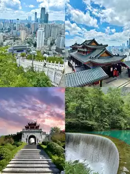 Tianhe Lake → Qianling Mountain Park → Catholic Church → Dongshan Temple🏯→ Cuiwei Garden → Night view of Jiaxiu Tower🏛️