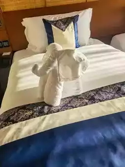 2. Upon check-in, you'll find towels folded into the shape of elephants on the bed, a thoughtful touch that adds a delightful surprise to your stay.