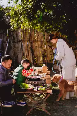 ✔ Slight rain relaxation mode: bamboo forest rain cooking tea + indoor barbecue western food