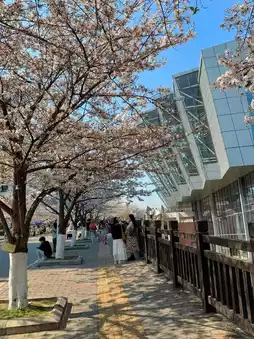 1. Cherry Blossom Avenue: Rows of cherry blossom trees are planted on both sides of the main road of the West Campus. When in full bloom, it looks like a pink tunnel. Any photo you take will be a Japanese blockbuster!