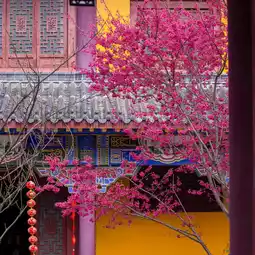 The biggest surprise here is that you can feel the tranquility and solemnity of the ancient temple while immersing yourself in the romantic tenderness of cherry blossoms. The red walls, gray tiles, flying eaves and pink and white flowers complement each other, and any photo you take will be an atmospheric masterpiece! Standing under the cherry tree, the petals fell on my shoulders, and at that moment I felt as if I had traveled into an ancient painting.