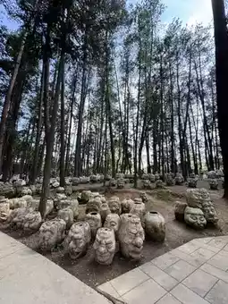 - **Ancient rock sculptures made entirely from stone and natural materials.