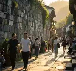 A 10-minute walk to the main street of the ancient town. Must-try dishes include Qingyan braised pig’s trotters and tofu balls, then refresh with a bowl of ice jelly to cut the grease. Don’t miss the glutinous rice by the street!
