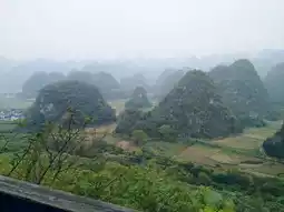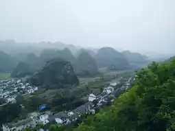 Here unfolds a picture of perfect harmony between karst peaks and pastoral life. Emerald solitary hills rise abruptly, embracing vast stretches of vibrant farmland. Villages of white-walled, dark-tiled houses nestle among them, resting by mountains and waters in serene balance. This poetic scenery, celebrated as an "embroidered landscape," stands as a timeless portrayal of coexistence between humanity and nature.