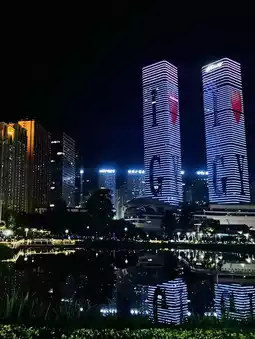 Attractions - There are beautiful state of the art buildings including the recently built twin towers, the White House (huge castle facing the park: word in the street is it is apparently a private home that belongs to two brothers who settled in Huaguoyuan a long time ago, and they are the ones that have developed it to be what it is today)