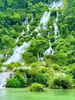 #chinatravel Xiaoqikong Scenic Area is a full on nature playground. It’s in Libo County, Guizhou, and honestly, it’s one of the greenest, most peaceful places I’ve been. Waterfalls, old stone bridges, clear turquoise rivers, it's like walking through a Studio Ghibli movie.