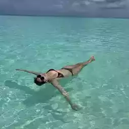 The beach also has sunshades and comfortable sun loungers, making it enjoyable to lie down all day.
