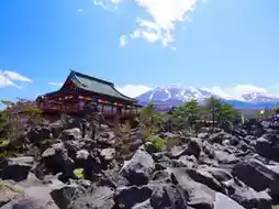 Onioshidashi Park is a lava field created by Mount Asama's eruption, offering dynamic natural beauty. The park has well-maintained walking trails, allowing visitors to enjoy the majestic scenery of Mount Asama while walking among the lava formations.