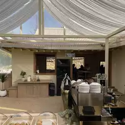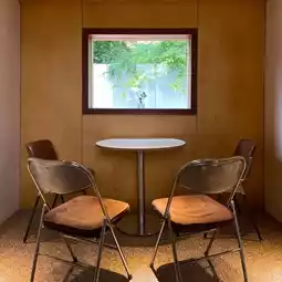 I think the large magnolia tree next to it makes the interior of this cafe stand out even more~