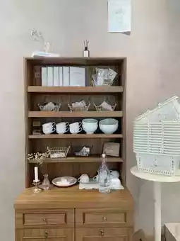 They have a lot of merchandise for sale, and the cream-colored windows are really cute.