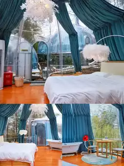 🏠The B&B offers two types of personal experiences: bamboo forest cabins and starry sky bubble houses. In my opinion, the wooden villas are spacious and suitable for family trips, while the starry sky bubble houses are very romantic and suitable for couples and parent-child👍🏻👍🏻.