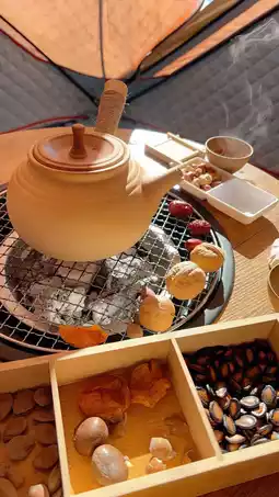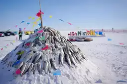 Ice fishing 🎣 is done in a small tent⛺. There is a charcoal stove for making tea and keeping warm.