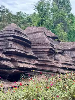 The color of the red stone forest is closely related to the weather. It is recommended that you check the weather forecast in advance ☁️. The color is redder on sunny days 🌞 and blacker on cloudy days.