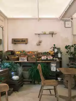 A place where you can taste fruit ade and moist scone-like dessert Irish Grad in a vintage and cozy atmosphere, as if you were in a European countryside farm or market🍌