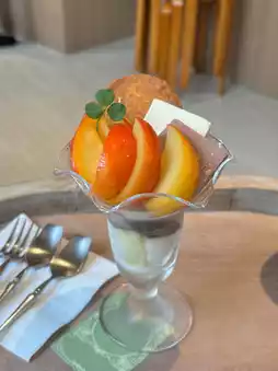I had the plum parfait, and it was absolutely delicious. The plums were sweet and juicy without any tartness🍑. Each ingredient was fresh and harmonized beautifully, making every bite a delightful experience💕.