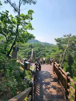After crossing the bridge, the trail continues up toward Gamaksan’s summit, which isn’t crazy high but still delivers with a nice panoramic payoff. Lots of chill spots to sit and snack along the way too. It’s super popular, so expect a bit of a crowd on weekends, but the vibe is fun and friendly.