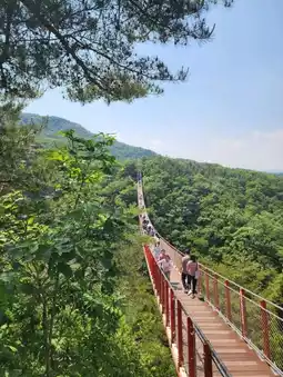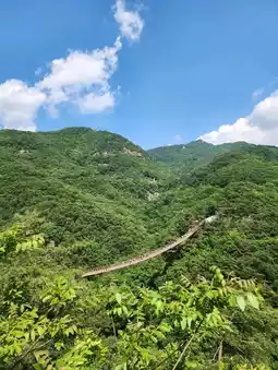#summervacay So I finally checked out the famous Gamaksan Suspension Bridge in Seolmari, and yeah, it totally lived up to the hype! The hike up isn’t super intense, but it’s got just enough incline to make you feel like you earned the view. And once you hit that bright red suspension bridge? Dang. It’s long, a little wobbly in the best way, and the views of the valley and forest below are chef’s kiss. Definitely a photo op moment.