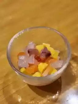 The sashimi was clean and not fishy, and the tempura was well-prepared without being greasy. The course ended with a satisfying main dish, leaving us thoroughly content.