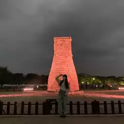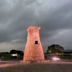 ⭐️Review: Cheomseongdae, a representative tourist attraction in Gyeongju, offers a nighttime view comparable to Donggung Palace and Wolji Pond. In the evening, the observatory lights up, offering a breathtaking view of green, pink, orange, and blue.