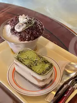 I ordered Snow Flower Bingsu (12.0) and Matcha Tiramisu (7.0). It was extremely hot on the day I visited, but I was happy because I melted the heat with the bingsu and recharged my sweetness with the tiramisu ♡︎ If you like sweet things, I highly recommend the tiramisu!!!