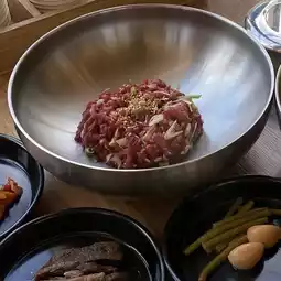 Gyeongju has so many yukhoe bibimbap and hanwoo mulhoe restaurants. Among them, I chose Hwangnam Yukhoe Restaurant. I chose it because there's no waiting and the view is great!