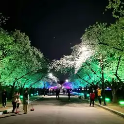 - If you go around 9 am on the road next to Starbucks, there won't be many people, so it's good for taking pictures. At night, the cherry blossom trees light up, so you can see a unique cherry blossom night view.