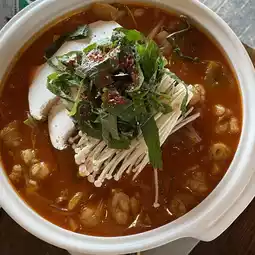First, we ordered beef tripe stew and Korean beef tartare kimbap!
