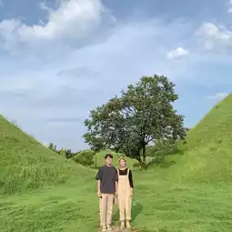 If you take a picture between the tombs in front of the magnolia tree at Daereungwon, you can get a refreshing picture between the green tombs!☘