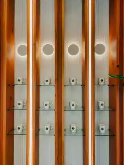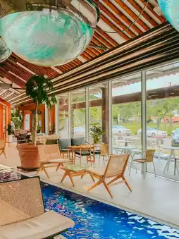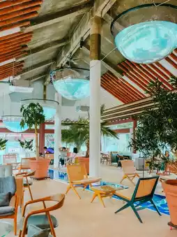 There is a large stream of water flowing through the center of the cafe, and a large puddle above💙