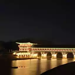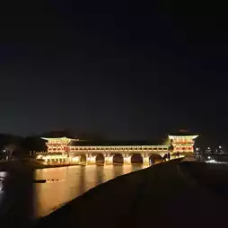 ✨️Woljeonggyo Bridge✨️ is a bridge from the Unified Silla period located at 163-1, Gyo-dong, Gyeongju-si, Gyeongsangbuk-do. It was lost during the Joseon Dynasty and was restored in April 2018 after verification. According to the Samguk Sagi, it was built in the 19th year of King Gyeongdeok's reign (760 AD) during the Unified Silla period and served as a connection between Wolseong and Namsan in Gyeongju. Through data collection and excavation surveys for two restoration designs conducted from November 26, 1984 to September 8, 1986, it was confirmed for the first time that there was a wooden bridge, and the restoration of the 66.15m long, 13m wide, and 6m high bridge was completed through construction from 2008 to 2013. Construction of two gate towers at each end of the bridge began in April 2016 and was completed in April 2018.