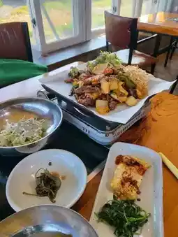 at a great restaurant called Jangteo Bapsang! It feels like it's located in a small fishing village, but it still has a nice ocean view. 🩵