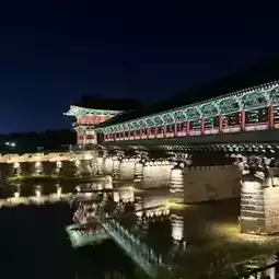 Woljeonggyo Bridge in Gyeongju, built during the Unified Silla period! Lost during the Joseon Dynasty, it was restored in April 2018 as Korea's largest wooden bridge, becoming a new landmark in Gyeongju.