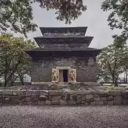 Bunhwangsa Temple, was built in 634. There is a three-tiered pagoda (National Treasure No.30), though it is presumed that it was originally seven or nine stories. Pats of the pagoda collapsed over time, and it was renovated in 1915. During the renovation, a stone reliquary was discovered with coins used in Song China. This suggests that it was also renovated at the beginning of the 12th century. Shells from Taiwan and Okinawa were also found on site, showing the reach of the Silla kingdom. The pagoda used to be hollow but now it is filled with the collapsed remains of the other floors.