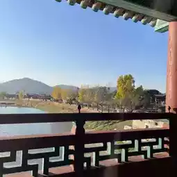 In addition to the long corridors that can be used to take beautiful photos, the stone road in the river beside can also be used as a background to take beautiful commemorative photos.