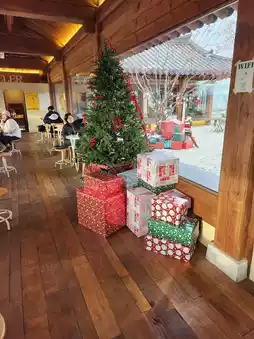I visited Bagel Bagler to buy the famous bagels in Gyeongju. There was a pretty Christmas tree and a cute Santa bear statue, so I was able to take a picture of my life and feel the Christmas atmosphere early. They said dogs are allowed, so I want to come again with my dog next time ❤️