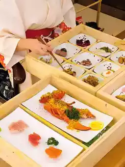 Eat a lot of kaiseki cuisine with abundant seafood, lobster, and cypress steamed food!