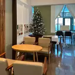 The space is wide and there are many tables, so it's good for gatherings.