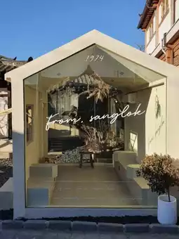 Cafe Sangnok, built with glass, amidst lush evergreens 🌿