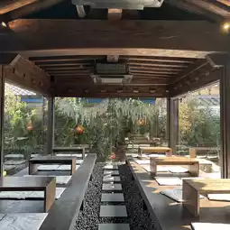 And there is an artificial pond in the center of the cafe,
