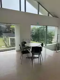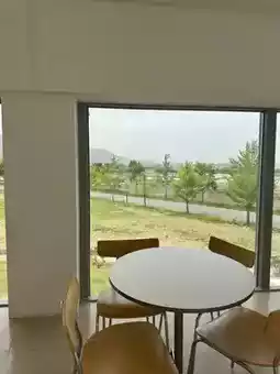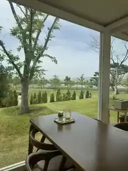 It has a spacious outdoor space and a two-story building, and it was a great place to enjoy the water, rice fields, and mountains with its large windows!